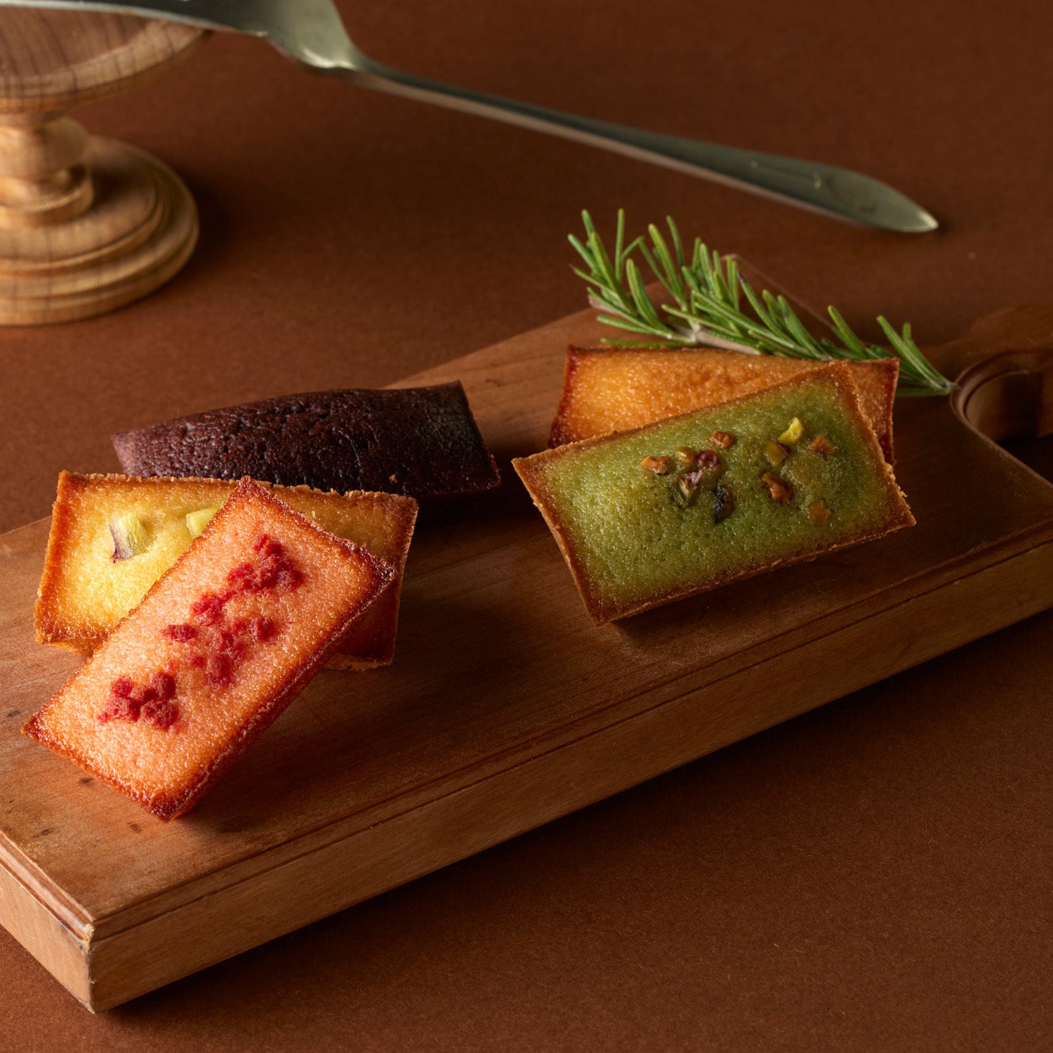 【商品内容】フィナンシェ(プレーン・ピスタチオ・チョコ・イチゴ・さつまいも)各1個