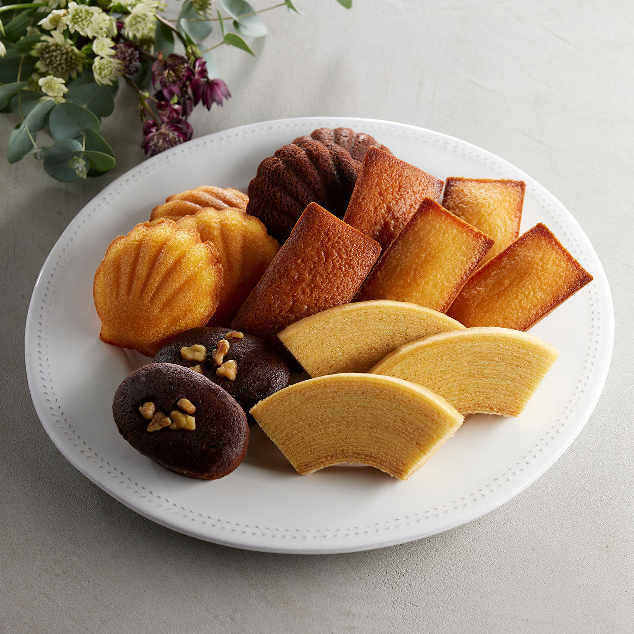 商品サイズ | <バウムクーヘン>縦7.5×横14.0×高さ2.5㎝ <マドレーヌ>縦6.5×横7.0×高さ2.0㎝ <チョコマドレーヌ>縦6.5×横7.0×高さ2.0㎝ <フィナンシェ>縦4.0×横7.5×高さ1.5㎝ <キャラメルフィナンシェ>縦4.0×横7.5×高さ1.5㎝ <ブラウニー>縦7.5×横5.0×高さ2.0㎝ |