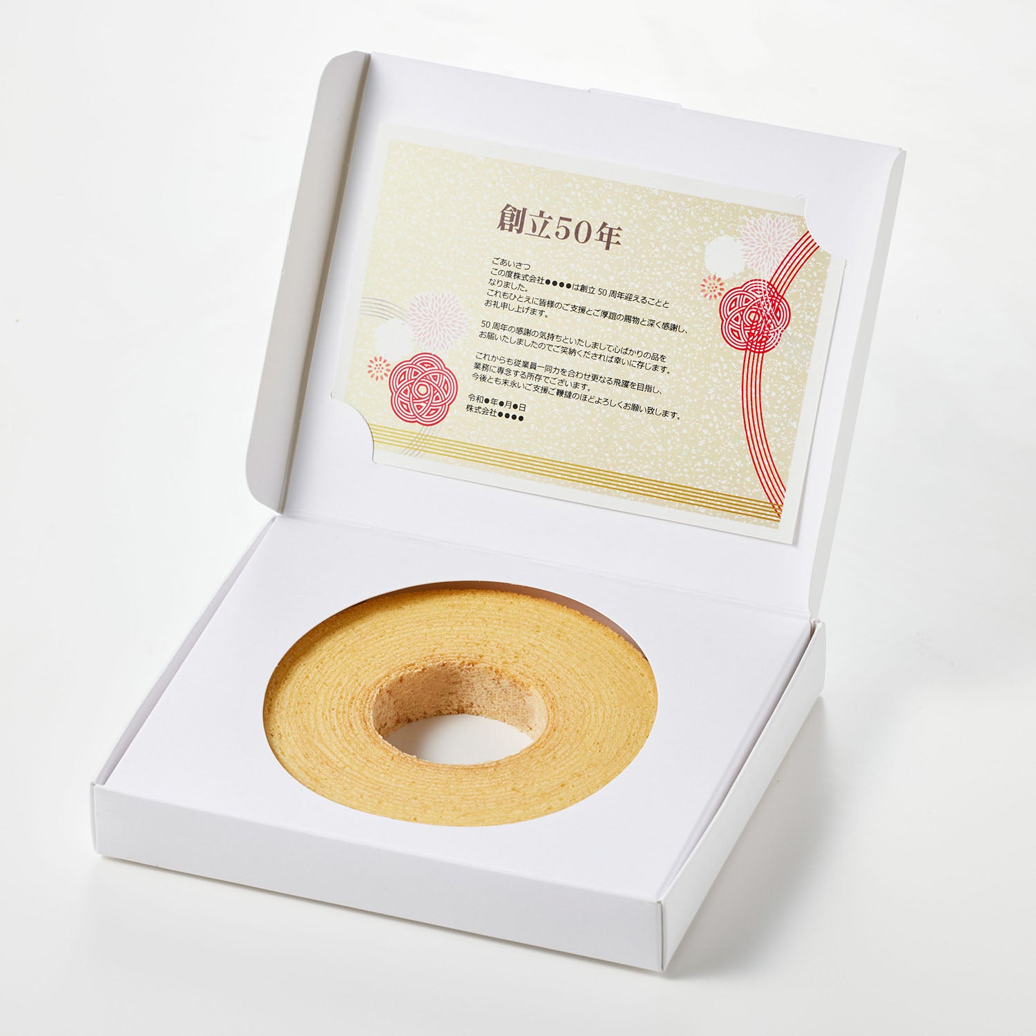 オリジナルメッセージカードを作成して、バウムクーヘンと共にお届けします。