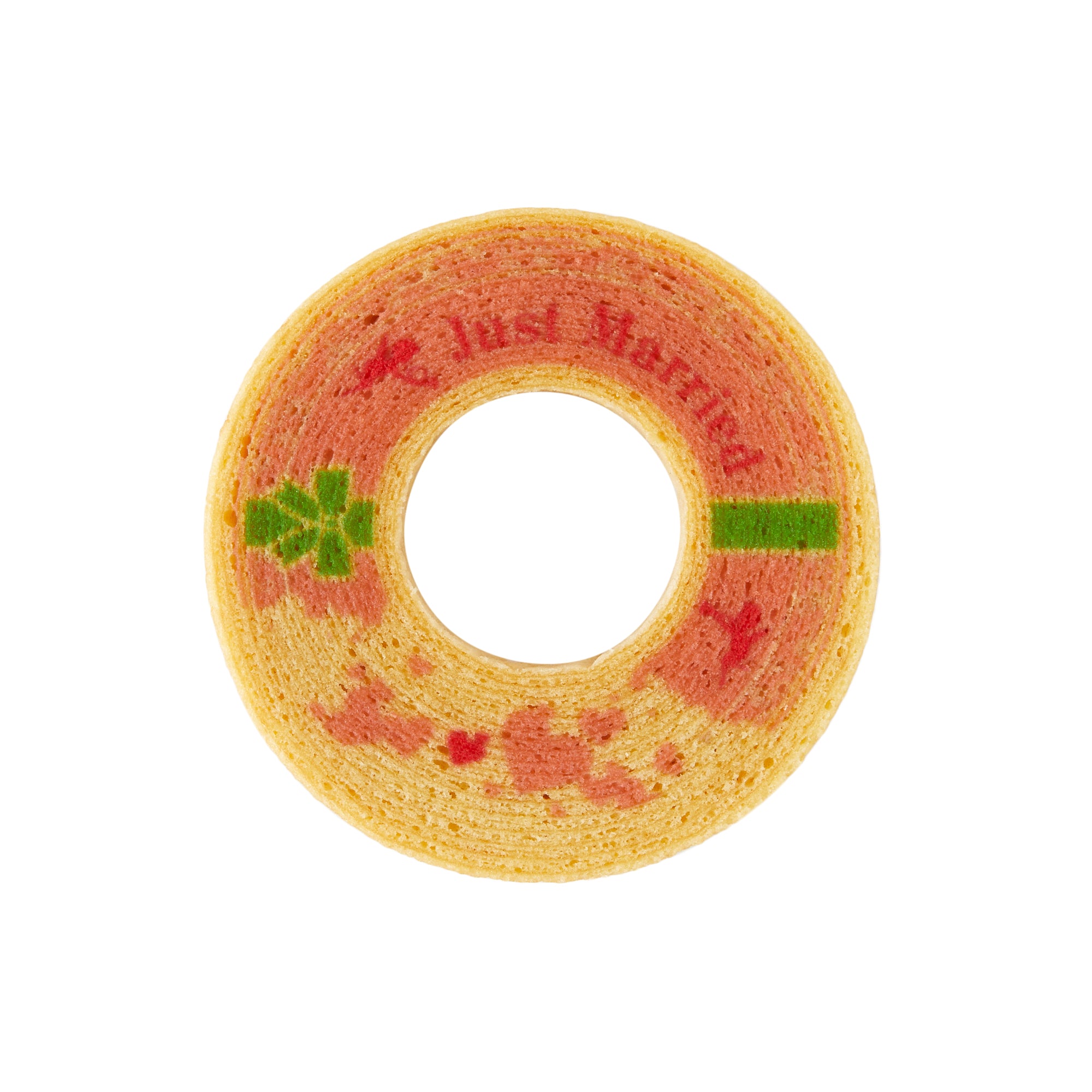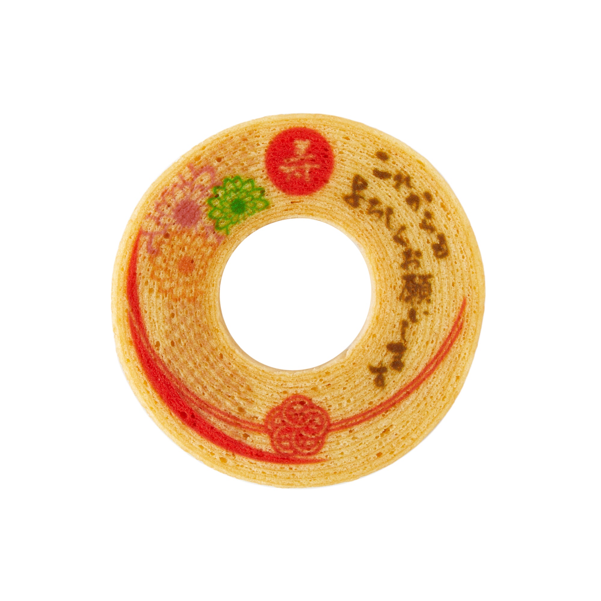 原材料 | 鶏卵(国産)、砂糖、ショートニング、マーガリン、小麦粉、コーンスターチ、米粉、洋酒、アーモンド加工品(アーモンド、砂糖、還元澱粉糖化物)、クリーム(乳製品)、乳等を主要原料とする食品/乳化剤、膨張剤、香料、酸化防止剤(V.E)、pH調整剤、着色料(赤102、赤106、黄4、青1、アナトー)、(一部に小麦・卵・乳成分・アーモンド・大豆を含む) |