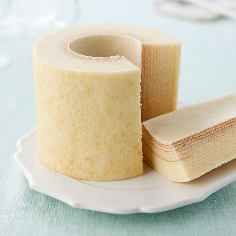 クーベルチュールホワイトチョコレートを生地に混ぜ合わせることで”純白”を表現。うっとりする食感とミルキーな味わいのバウムクーヘンです。